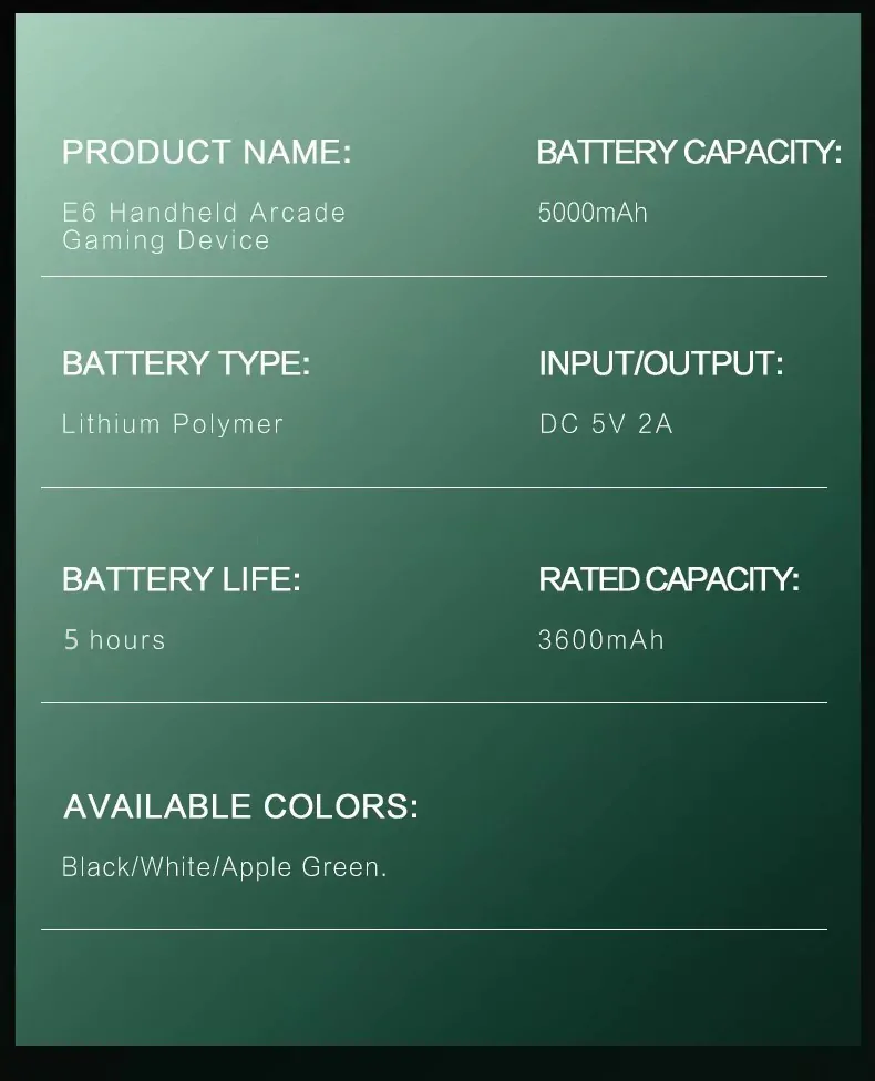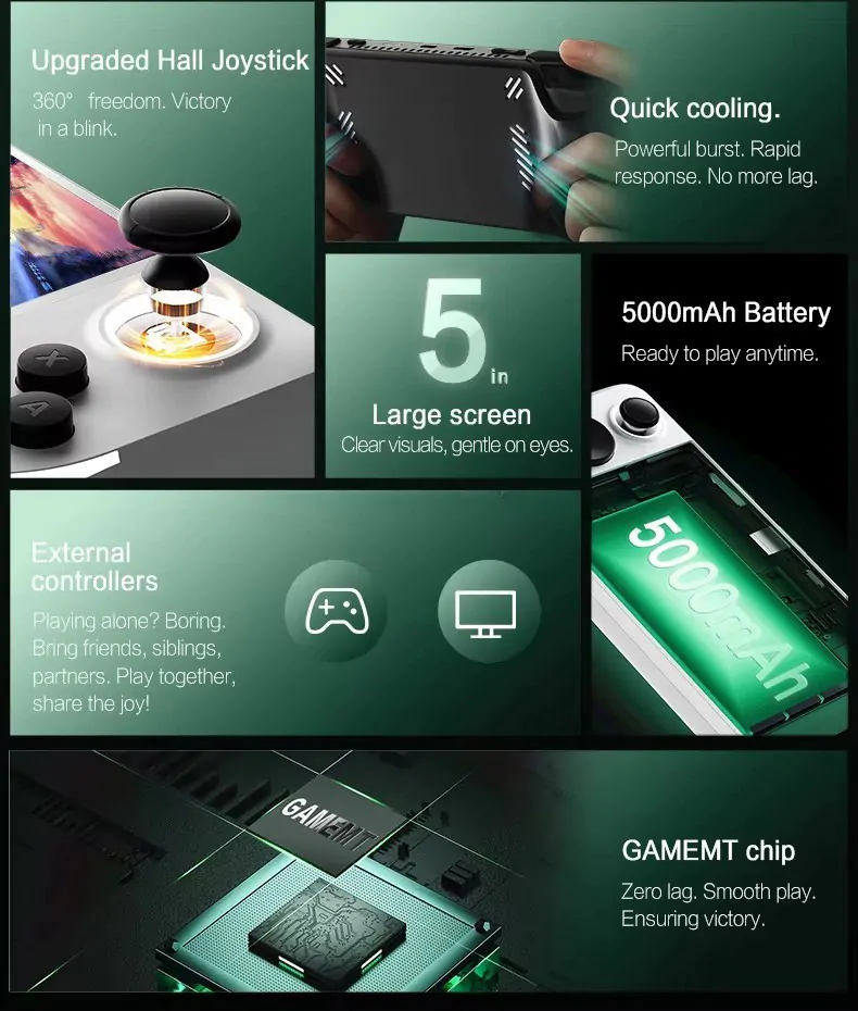 5000mAh capacity delivers 5-8 hours playtime – 2x longer than average portable consoles.